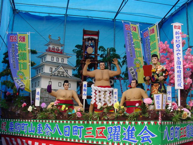 今回の懐かしの画像は栗原市栗駒町の夏祭りの1コマで2001年頃でないかと思われますが・・・・ 画像内容からすればこのころの宮城国体で相撲競技の一部が行われたのでしょうか?大崎市古川でもバレーの一部が行われたような気がしますが・・・ (大崎バックグランド)に戻る。